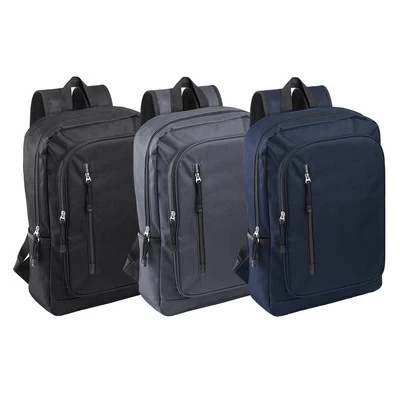 Resistant 600D polyester backpack with zipper closure and front pockets. In sober colors, with back and padded shoulder straps, inside padded compartment up to 15 inches laptops and shoulder straps for easy opening. Features: Resistant 600D polyester, Zipper closure, Front pockets, Back and padded shoulder straps, Inside padded compartment up to 15 inches laptops, Shoulder straps for easy opening. Materials: Polyester. Colours: Black, Grey. Size: 32 x 44 x 18 cm. Packing: Bulk. Decoration Position: On the front of the pack. Print Size: 9 x 9 cm.