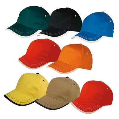 5 panel cap in 100% brushed cotton material. In a varied range of bright tones and with piping in visor. Embroidered ventilation holes and adjustable velcro closure. Features: 5 panel cap, 100% brushed cotton, Embroidered ventilation holes, Adjustable velcro closure. Materials: Cotton. Size: One size fits all. Packing: Bulk. Decoration Position: Front. Print Size: 9 x 5 cm.