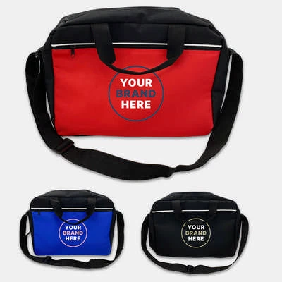 Our conference bag is great for the morning rush as it comes with an adjustable shoulder strap so you sling over your shoulder in an instant. It also has two twin top handles, so easy to carry as well. It has the perfect rectangular storage options with a slip zip pocket on the outer side and internal main compartment has a zipper with a gusset, so you can keep your documents organised easily &; brand up with a transfer options today!Please note a standard digital transfer CMYK cannot be exactly PMS matched. For digital transfer printing, please ensure art and colours are at full opacity. Colour: Red 185C, Blue 286C, Black. Price includes: 10 Days Service. Digital Transfer. Setup is included.
