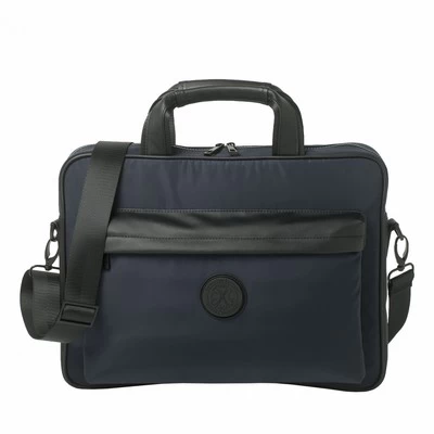 The super light Element document bag features a soft matte black leather imitation mixed with a very smooth and delicate dark blue nylon. The rubber tag stamped with the Christian Lacroix logo delicately sewn on the nylon gives a young and casual feel. The inside computer case allows to protect your laptop in all circumstances. Materials: Polyamid. Colours: Black, Blue. Size: 380 x 60 x 290 mm. Decoration Position: Packaging, Product. Print Size:xcm.