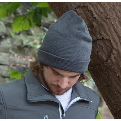 Description: Contemporary knitted beanie, can be worn in different ways. Sewn double folded for a thick and stable feeling, the only seams are on top. Comes with a small plastic hanger for easy display. Material: 100% Acrylic. Colours: 400 Red, 600 Navy, 900 Black, 935 Grey Sizes: One size