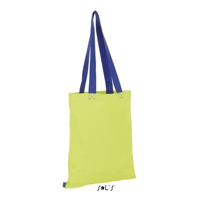 Available Colours: Black / Neon lime, Neon lime / Royal blue, Red / White, Royal blue / Orange, White / French navy. Features: Fashionable shopping bag, Contrast large handles: 3×65 cm. Contrast top stitching, 235gsm. Materials: Canvas- 100% cotton. Colours: Black, Blue, Green, Red, White. Packing: Boxed. Decoration Position: Side of bag. Print Size: 200 x 200 mm.
