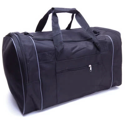 Description: Top quality large size 600D polyester sports bag. Size: 62(w) x 30(h) x 26(d) cm. Print area: 20(w) x 14(h) cm. Colours: Black, Red, Royal, Navy. Price includes: 8-10 WEEKS SEA INC 1 COL 1 POS. Setup is included.