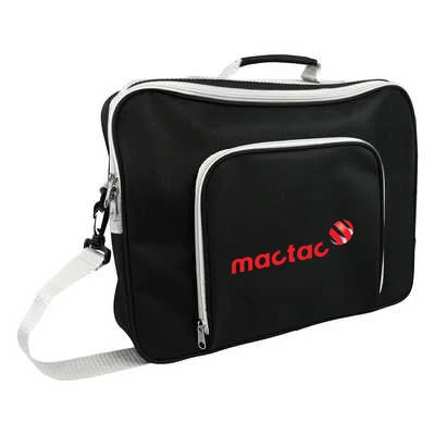 600D polyester conference bag with front zippered compartment, carry handle and mobile phone pocket Supplied in polybag.Please note a standard digital transfer CMYK cannot be exactly PMS matched. For digital transfer printing, please ensure art and colours are at full opacity. Colour: Black &; Grey. Price includes: 10 Days Service. Digital Transfer. Setup is included.