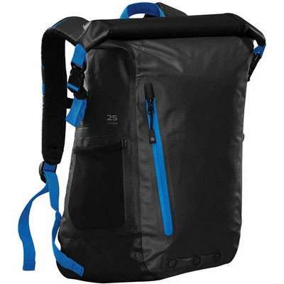 Just because you head out in extreme weather, doesn’t mean you need to invite it in. The Rainier 25 Waterproof Backpack protects your laptop and other valuables by sealing out the wet with ultrasonically welded seams, waterproof zipper, and a roll-top closure. Proven tough, this pack can be trusted from bucketing backcountry adventure to pouring city commutes. With ergonomic, adjustable shoulder and sternum straps as well as a padded airflow back panel, this pack has your back in the comfort department. Product Features: 100% Waterproof Ripstop Fabric, Roll Top Closure, Large Front Pocket with Waterproof Zipper, Ultrasonically Welded Waterproof Seams, Padded Back Panel, Ergonomic, Adjustable Shoulder and Sternum Straps, Padded, Removable Laptop Sleeve, Exterior Gear Loop, Dual Side Mesh Pockets, Internal Key Clip, FABRIC: 100% Nylon Ripstop with 100% Polyester Lining, SIZE: 26H x 14.5W x 9″ H, VOLUME: 25 Liters / 1,525 Cubic Inch. Colours: Black/Azure Blue, Black/Bright Red, Black/Graphite