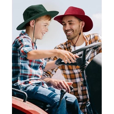 Fabric:Poly / Cotton Twill, 65% Polyester, 35% Cotton. Description: PF rating 50+ “Excellent Protection”. Meets AS/NZS 4399:1999. Poly / Cotton Fabric: with hard brim. Self color metal eyelet for ventilation. Toggle and breakaway clip on chin strap. Sizes: 55cm (S), 57cm(M), 59cm(L),61cm(XL). Sizes: 55, 57, 59, 61. Colours: Black, Bottle, Gold, Maroon, Navy, Red, Royal, Skyblue, White