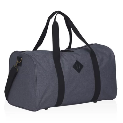 300D Polyester, with black/white striped polyester lining, Internal mesh accessory pockets, Zippered main compartment, Zippered shoe end compartment, Leatherette zip pullers, Detachable/adjustable padded shoulder strap, Webbing carry handles, Antique finished brass accessories, Antique finished brass feet, Classic heritage loop label, smpli side pip label. Colours: black, grey melange. Capacity: 42 Litres. Dimensions: 29cm H x 52cm W x 28cm D. Decoration Area: Front: 150mm W x 180mm H, End 180mm W x 120mm H. Freight Details: 10 per carton, 10. 7kg, 56cm L x 29cm W x 37cm H