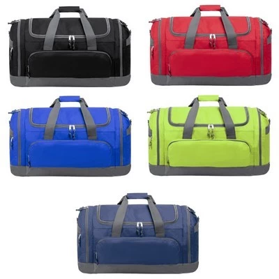 Multipurpose sports bag. Features: Multipurpose sports bag., High internal capacity in resistant 600D polyester., Two-colour design., Grey base and details., Main compartment and side pockets with zip closure., Resistant, nylon carrying handles with matching colour velcro closure., Includes adjustable shoulder strap., Carabiner closure., Matching shoulder pad., Reinforced base., Polyester 600D. Materials: Polyester 600D. Colours: Black, Blue, Green, Red. Size: 65 x 34 x 33 cm | 960 gr. Packing: Bulk. Decoration Position: Front pocket. Print Size: 200 x 90 mm.