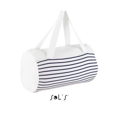 Available Colours: White / Navy, White / Red. Features: Zip opening. Long handles. 1 inside pocket. Dyed yarn. 100% cotton. Materials: 100% cotton. Colours: White. Packing: Boxed.